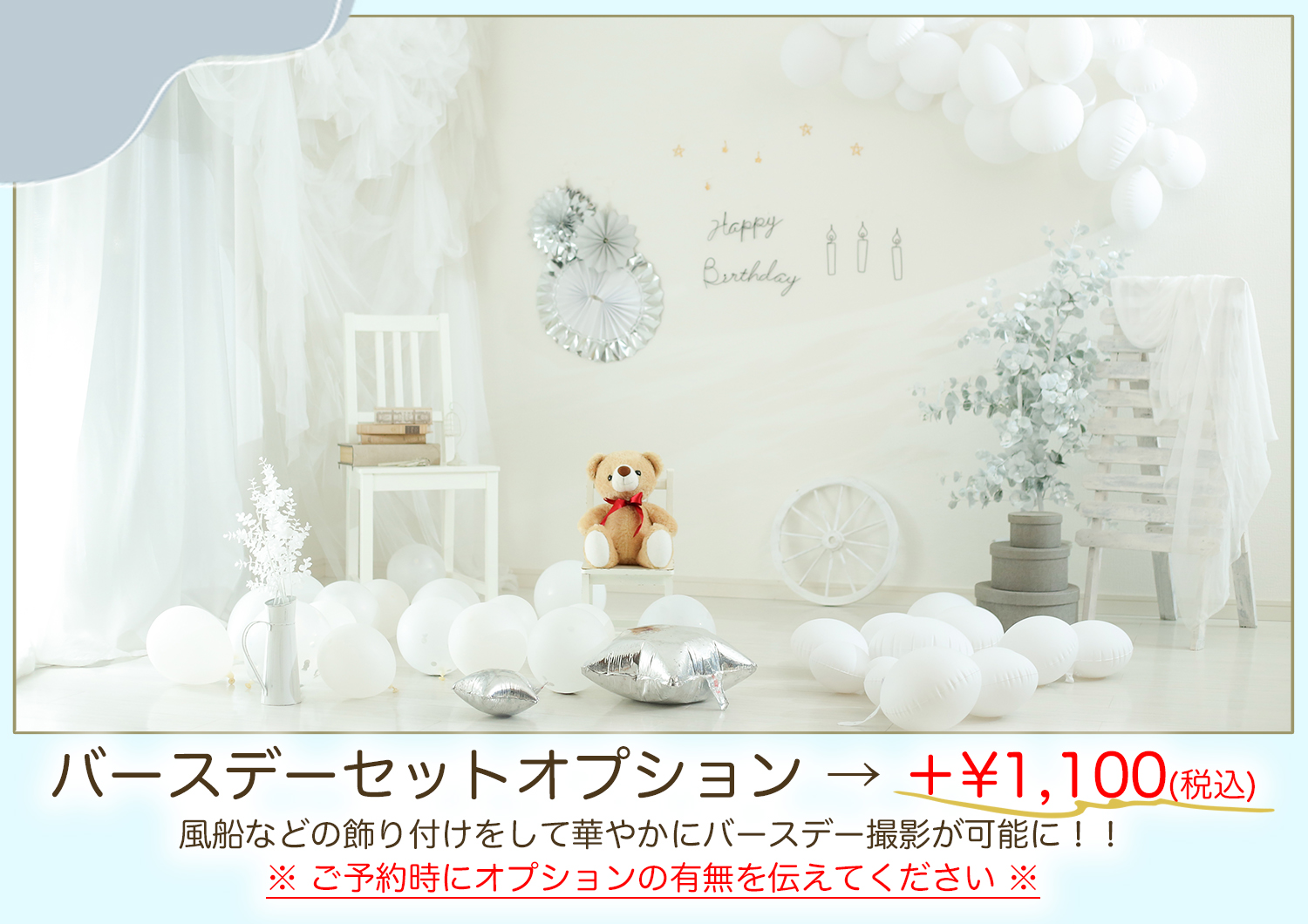 七五三プラン】もしくは【お宮参り・百日プラン】でのご案内となります。